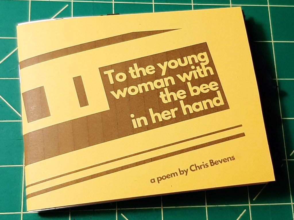 To the Young Woman With the Bee in Her Hand was the third chapbook in my series, it’s a poem I wrote for my daughter concerned with home, and saying hello, and saying goodbye. A version of this poem was published by Cathexis Northwest Press. It’s meant to be whispered widely like a sustained breeze.