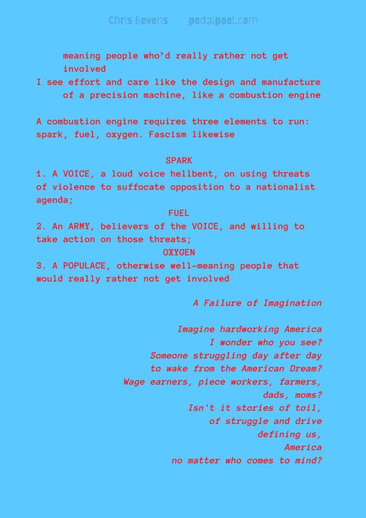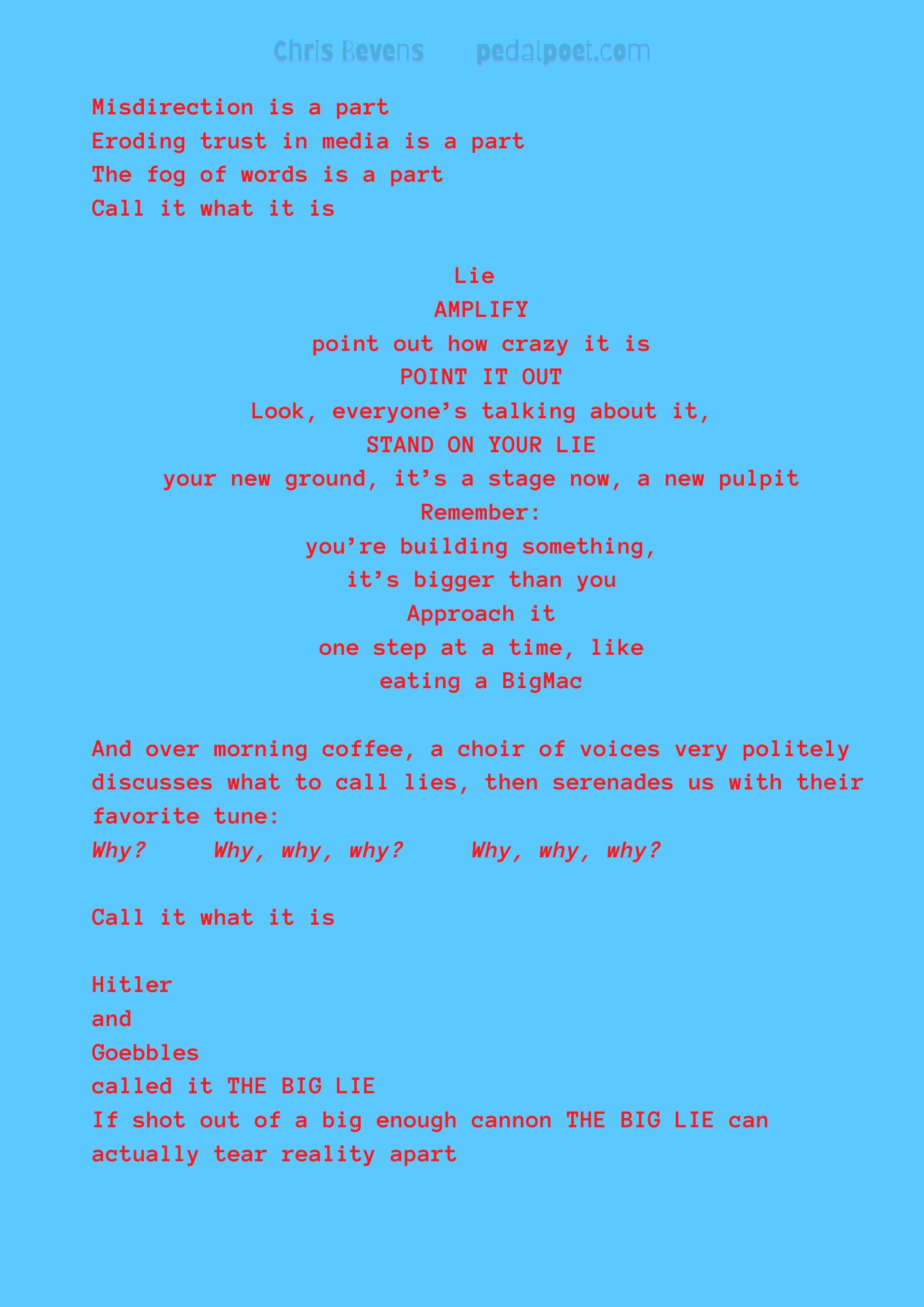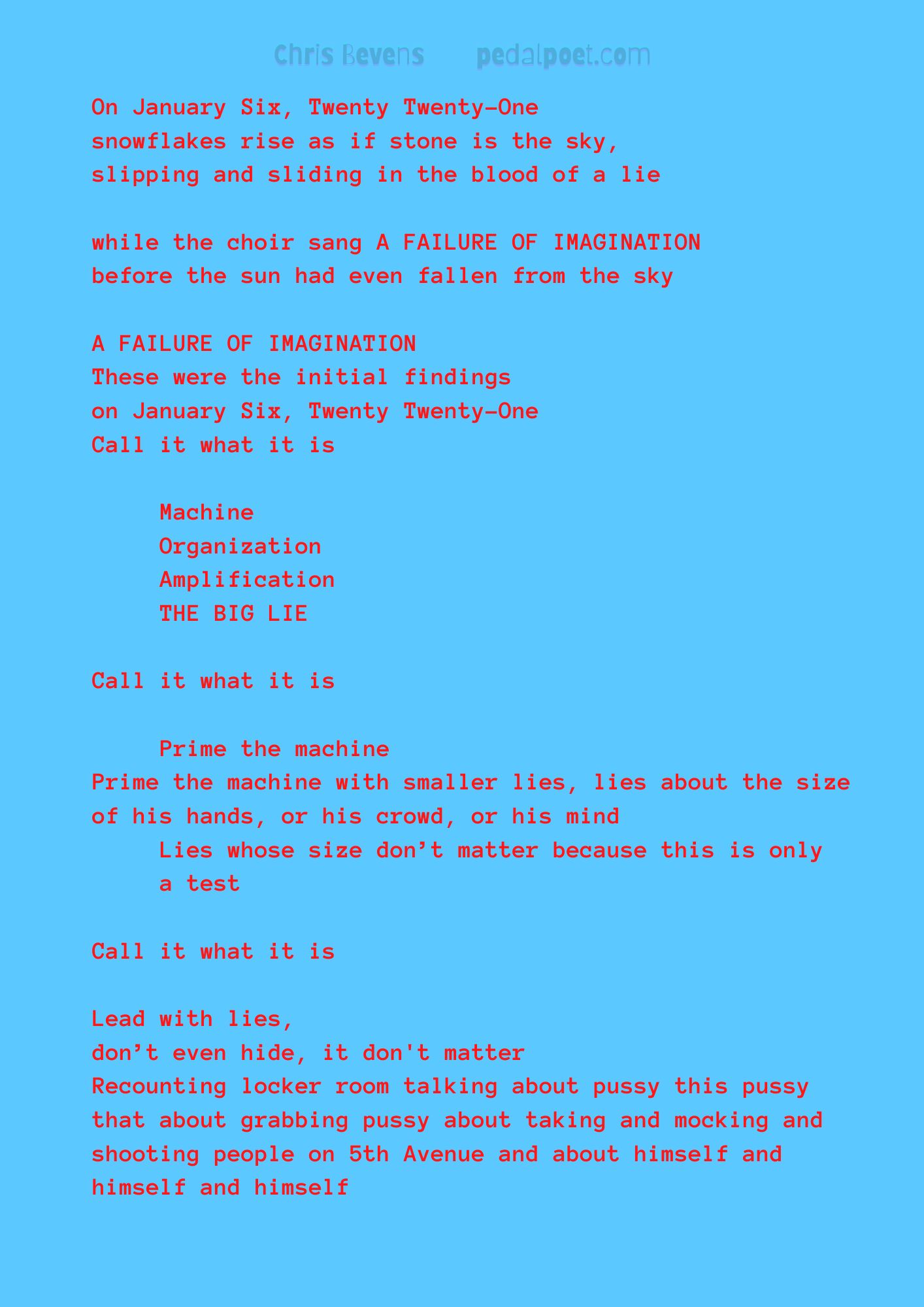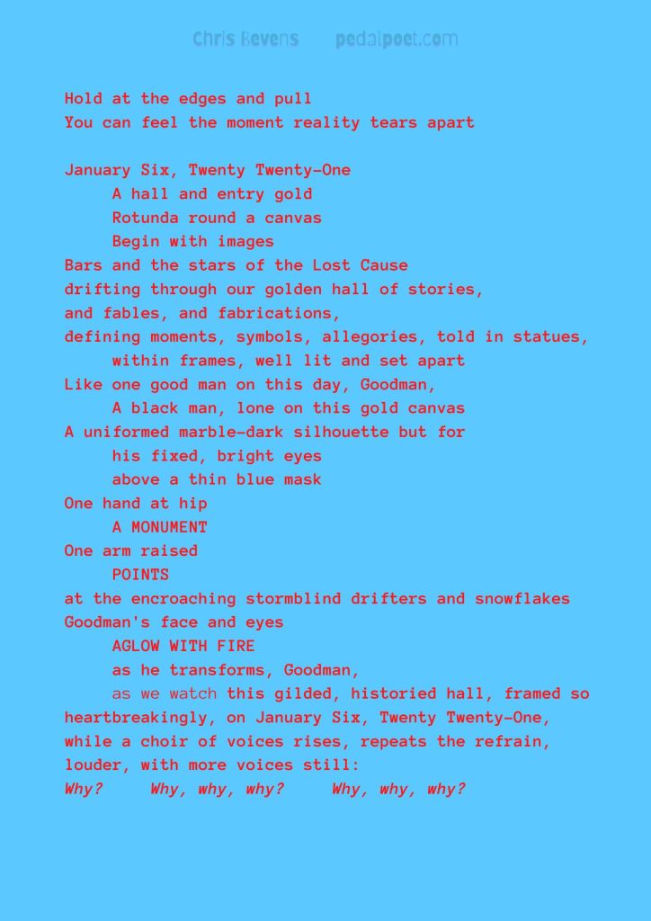With a nod to Kurt Vonnegut and Bob Dylan, and a call-out with special thanks and praise to Sergeant Eugene Goodman. The threat comes again, and again, and again, rising like the wind itself, the threat of fascism. *The refrain Why? Why, why, why? Why, why, why? repeated twice in the poem should be sung or spoken to the tune of Dylan’s Blowin’ in the Wind; specifically the second descending line of the two-line chorus, The answer is blowin’ in the wind. Would you like a copy of this poem in chapbook form mailed to you? Message me for info and thank you.