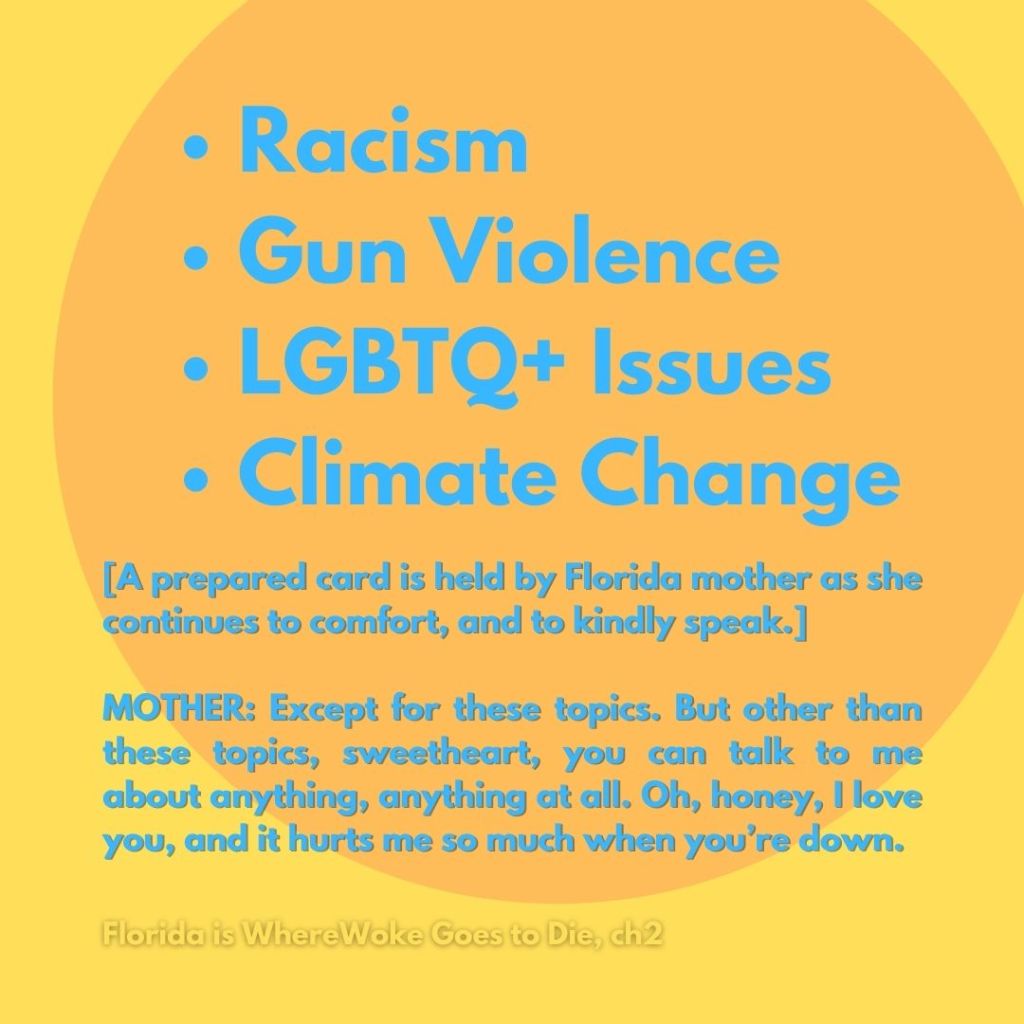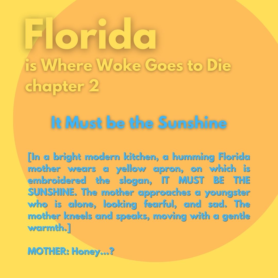 It Must Be the Sunshine Posted bypedalpoetFebruary 3, 2023February 4, 2023Posted inpoetryTags:antifascism, bullies, fascism, florida, privilege, short screenplay A short play about government-sponsored child abuse. Share this:TweetLike Loading... Related Published by pedalpoet Poet and artist living in Seattle, WA View more posts