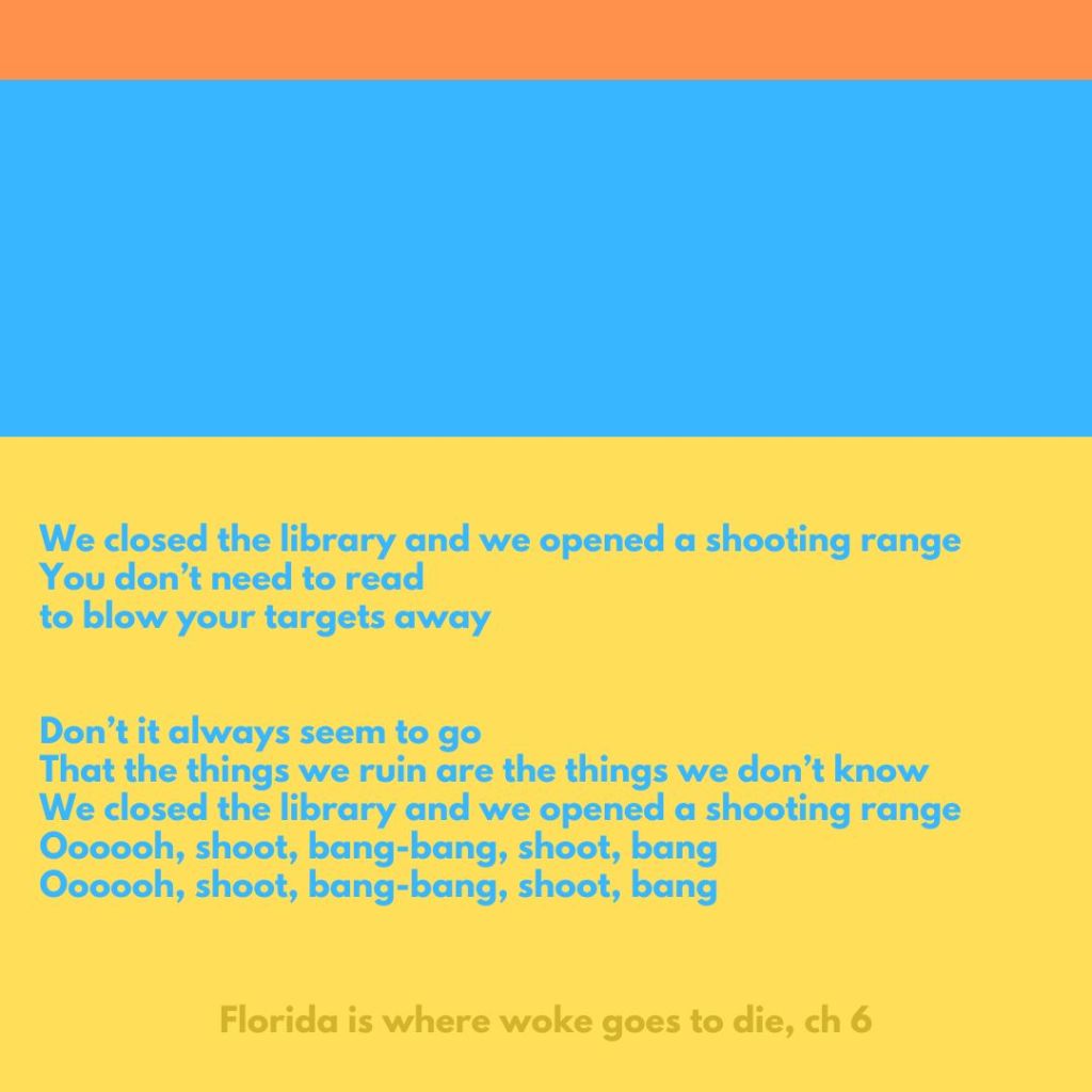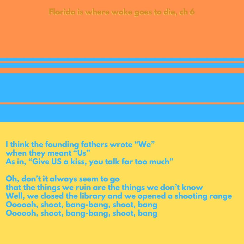 Because Florida just can’t stop. You know the tune, sing along, make up your own words. (Apologies to Joanie Mitchell.) Despite Webster Barnaby’s wonderful name, and despite his ability to voice that he is confused and doesn’t understand a vulnerable population in America, he doesn’t take the next step that a decent person takes, especially a leader, and that is to use empathy and compassion to try to understand those people, and that fear of his. Rather, after announcing he doesn’t understand, he hides behind “Christianity” and attacks that vulnerable population. Like people did not that long ago to justify buying and selling other people just like him. Gee, I wonder who Jesus would attack?