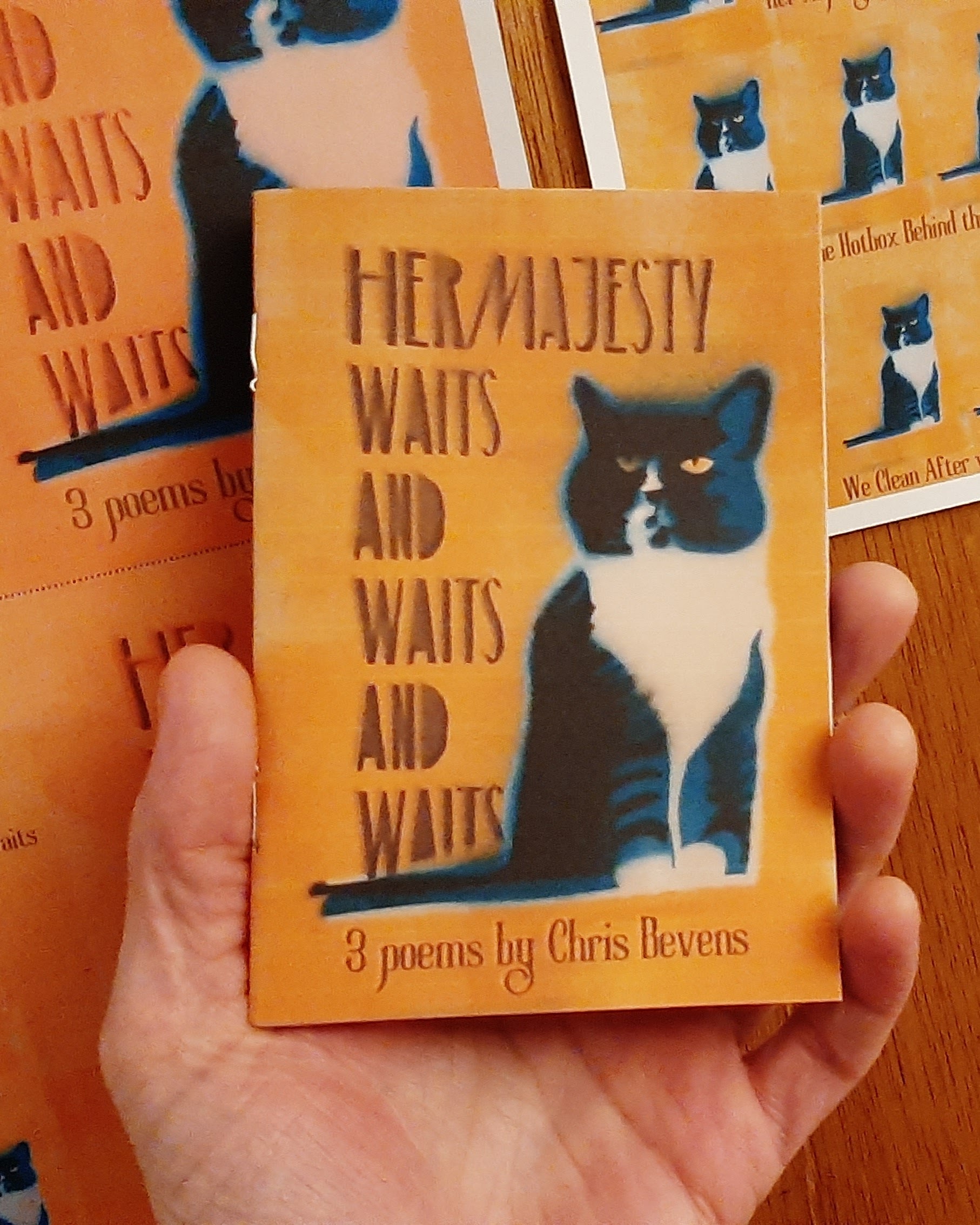 Moments later, she cries; she turns and cries Her Majesty’s whiskers and ears up, high, turned from the door, she cries, and having cried, Her Majesty sits, sits and waits at the door