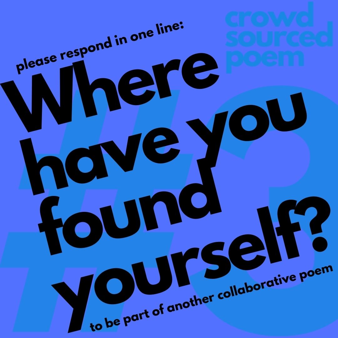 Hey poetry friends, let’s make another poem together! To get involved, respond in one line to the prompt: Where have you found yourself? I’ll weave all the submitted lines into a poem and post it here and on instagram @pedalpoet. I’d love to see a poem you might make from the same submitted lines, giveContinue reading “Let’s make another poem together – crowdsourced poem #3”