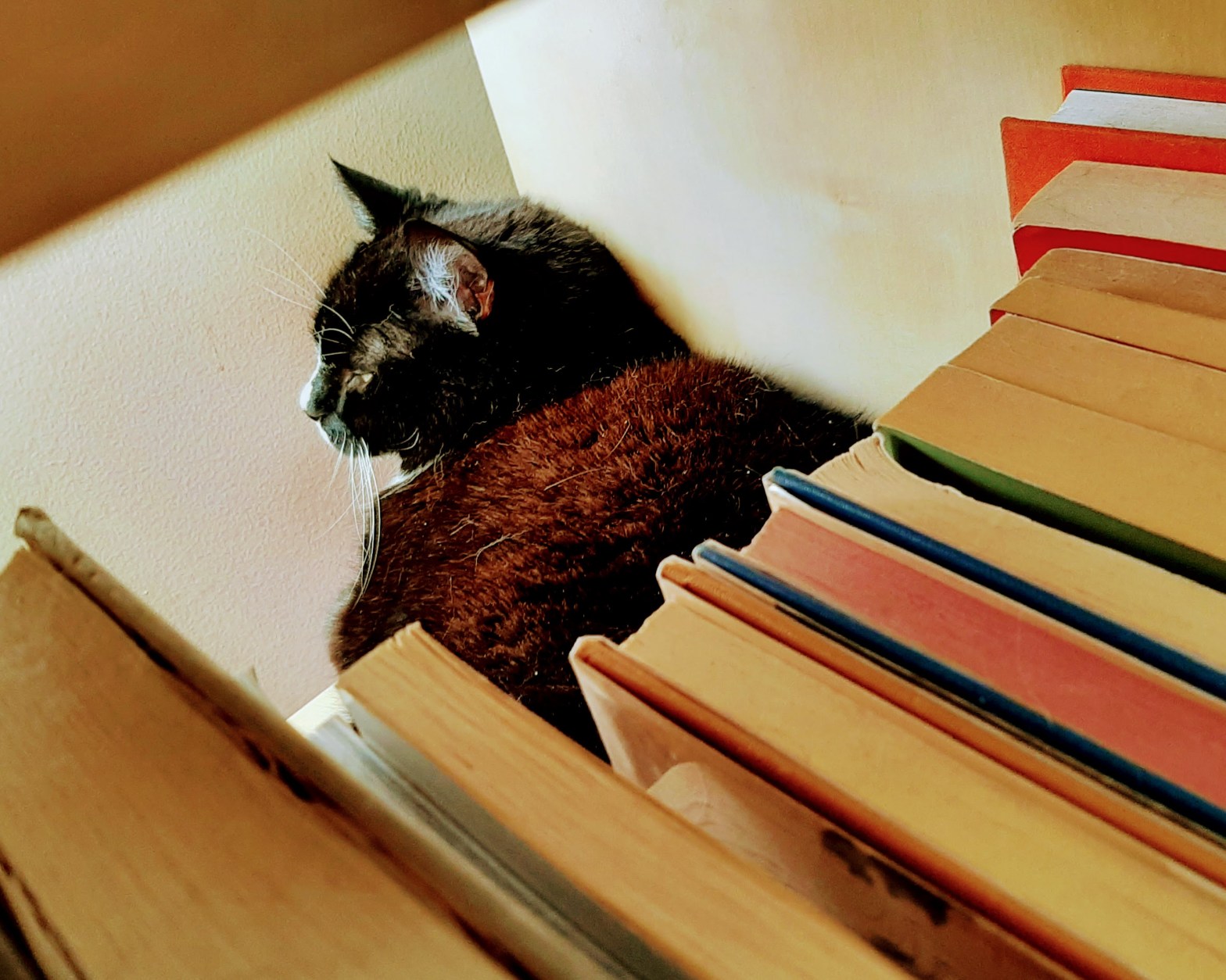 In the bookshelf, below the window and behind the spines,above the heater, once winter’s arrived,is the hotbox, where you’ll find Ninja,Her Majesty, curled and asleep, or reclinedand in thought, four legs stretchedand pressed to the wall in this space that we keepjust for her, for Her Majesty, who likes it warmwhen it’s cold, and coolContinue reading “The Hotbox Behind the Books”
